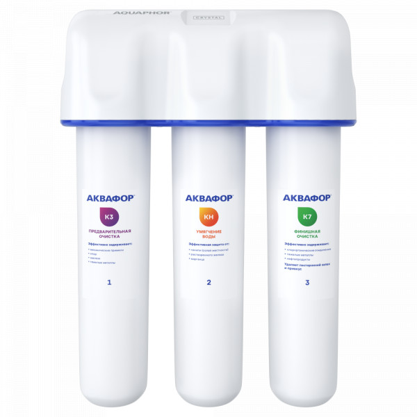Обратноосмотические фильтры используются для абсолютной защиты от накипи, т.к. полностью устраняют соли жесткости из воды.нетЧисло ступеней очисткиКартриджи последовательно очищают воду и от видимых примесей, и от растворенных. Первый картридж задерживает более крупные частицы, а каждый последующий - более мелкие. Чем больше ступеней - тем лучше фильтр очистит воду: поймает более мелкие видимые частицы ржавчины, песка и ила, успеет захватить из воды максимум растворенных примесей - хлора, нитратов, тяжелых металлов и других.3МинерализацияПроисходит после финишной очистки воды. Необходима прежде всего в фильтре обратного осмоса, поскольку такой фильтр полностью устраняет из воды все примеси, в том числе минералы. Минералы добавляются в оптимальной концентрации - для пользы и привычного вкуса воды.нетПостфильтрацияФинальный этап очистки воды: картриджи постфильтрации удаляют самые мелкие механические частицы и кондиционируют воду, придавая ей более приятный вкус.нетНакопительная емкостьОбычно нужна в фильтрах обратного осмоса. Глубокая фильтрация требует времени. Чтобы Вам не приходилось ждать, пока вода наберется в чайник или кастрюлю, почти во всех моделях используется накопительный бак для чистой воды или другая емкость. В стандартном фильтре обратного осмоса под мойку воды в баке достаточно для семьи из 5-6 человек.нетФильтрующий модуль в комплектедаОтдельный крандаДавление в водопроводе не более, атмМаксимальное давление воды на входе в систему, при котором возможна стабильная работа фильтра.6,5Ширина, смОбратите внимание на габариты фильтра, и измерьте, сколько свободного пространства в предполагаемом месте установки.26,0Глубина, смОбратите внимание на габариты фильтра, и измерьте, сколько свободного пространства в предполагаемом месте установки.9,0Защита корпуса от гидроударовдаИсходная водаЖесткая вода – вода с избытком минеральных солей. От нее появляется накипь в чайнике, известковый налет на сантехнике и разводы на посуде. Мягкая вода – та, в которой мало минеральных солей. Нет накипи в чайнике и разводов на посуде. Фильтры для мутной воды и фильтры от ржавчины, как правило, имеют несколько стадий очистки и дополнительный полипропиленовый картридж. Он задерживает механические частицы ила, песка и ржавчины и защищает картриджи более глубокой очистки.жёсткаяУстраняет мутностьМутность водопроводной воды может говорить о том, что в ней много мелких механических частиц. Важно, чтобы в фильтре был установлен дополнительные картридж механической предфильтрации (полипропиленовый) - он продлит жизнь остальным картриджам более тонкой очистки.нетУстраняет ржавчину, бурый осадокЛюбой фильтр под мойку удалит из воды крупные и мелкие частицы ржавчины. Некоторые фильтры имеют повышенный ресурс по железу: они дольше служат в такой воде, поскольку лучше подходят для удаления из воды железа и механических частиц ржавчины.нетЗащита от бактерийВсе проточные фильтры в той или иной степени защищают от бактерий. Например, добавление серебра препятствует их размножению. Это стандартная степень защиты. Если в семье есть дети, пожилые люди или аллергики, воду рекомендуется обеззараживать, то есть полностью удалять микроорганизмы. Повышенную защиту от бактерий дают фильтры с половолоконной мембраной. Это пучок тр