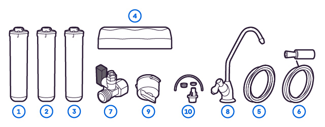 Заменить картриджи сможет даже ребенок - они легко откручиваются по щелчку и исключают контакт с содержимым фильтра. Фильтр удобно размещается под мойкой даже на маленькой кухне. Модуль предварительной очистки необходимо обновлять раз в 6 месяцев, остальные - раз в год.