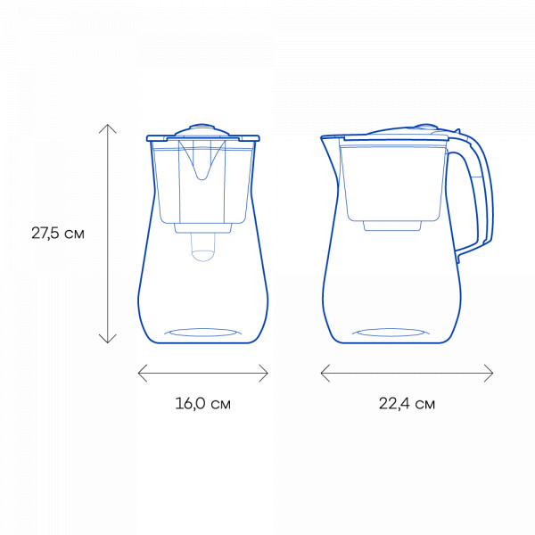 Объем кувшина, л4,2КрышкаоткиднаяСчётчик замены модулямеханическийРесурс модуля, л350